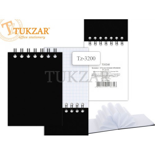 TUKZAR Блокнот на гребне форма А7. 60 листов в клетку, с пластиковой обложкой TZ 3200. Плотность бумаги 65 г/м2.