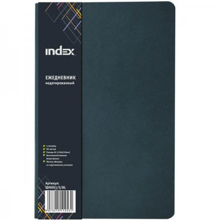Ежедневник для записей, линейка INDEX, арт.IDN001/S/BL. Недатированный ежедневник в гибкой интегральной обложке из экокожи со скругленными уголками. Внутренний блок изготовлен из белой офсетной бумаги плотностью 70 г/м2, с одноцветной печатью. Объем: 192 страницы. Размер: А5 (130х210 мм). Цвет: темно-синий. Модель подходит под персонализацию (нанесение логотипа) методом тиснения.