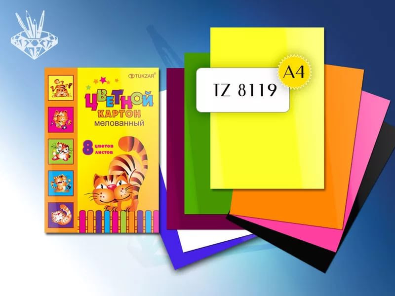 TUKZAR Картон цветной мелованный 8 листов, 8 цветов, арт. TZ8119