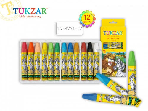 TUKZAR Мелки масляные, 12 цветов, вес мелка 8,5 г, длина 73 мм, заточенный наконечник, арт.TZ 8751-12
