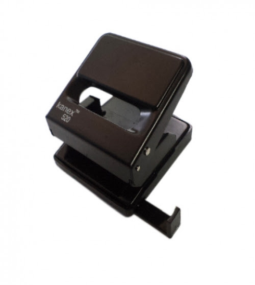 Дырокол металлический на 2 отверстия с выдвижной пластиковой линейкой, регулирующей место перфорации для разных форматов бумаги. Пробивная толщина до 30 листов. Цвет: черный.