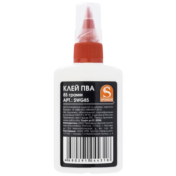 Клей ПВА-М с дозатором, предназначенный для склеивания изделий из любых материалов: глянцевая и матовая бумага, картон, кожа, фарфор. Подходит для декоративных работ. После многократного размораживания не теряет своих свойств и товарного вида, при высыхании сохраняет пластичность. В упаковке содержится 85 г.