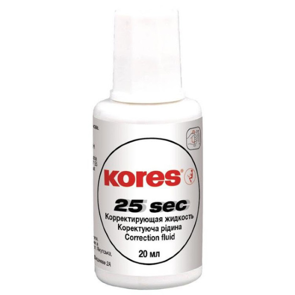 Kores fluid Корректирующая жидкость 20 мл., арт. 66817. Корректор на спиртовой основе в бутылочке с кисточкой. Оставляет гладкий слой коррекции; спустя некоторое время поверх откорректированного слоя можно вносить изменения.