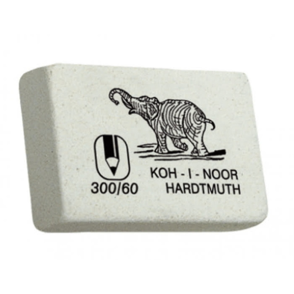 KOH-I-NOOR Резинка "Elephant" , 30*20 мм., белый, арт. 300-60. Знаменитый ластик "Elephant" - со слоном. Мягкий ластик для чернографитных карандашей. Не повреждает бумагу, обеспечивает чистое и аккуратное стирание. Идеально стирает следы мягких, средних и твердых карандашей