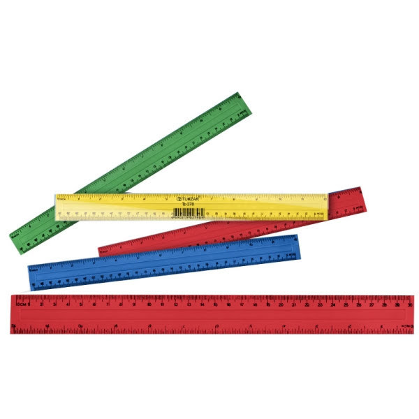 Линейка пластиковая цветная, длина 30 см., с двойной шкалой, арт. TZ 378