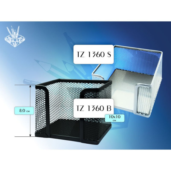Лоток для записных блоков: 10X10 см, металлический, высокий, АССОРТИ (сер/черн), арт. TZ 1360