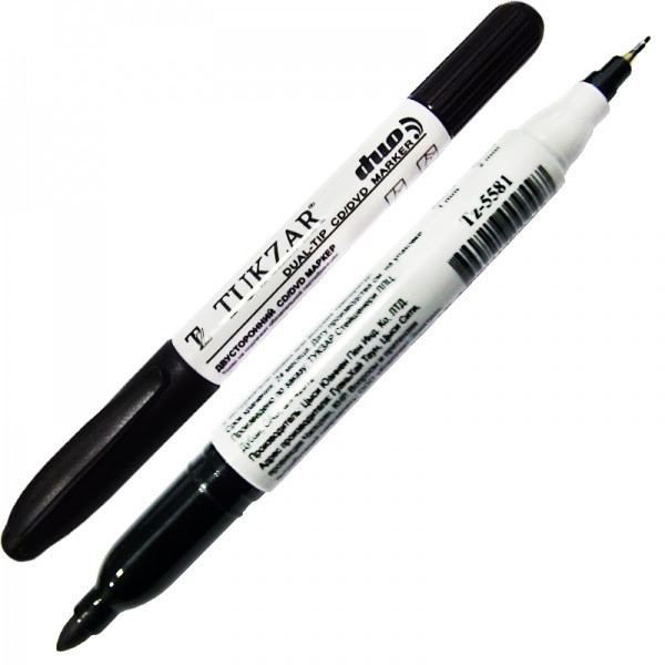TUKZAR Маркер 2-х сторонний перманентный DUO, для CD/DVD, черный, пулевидный наконечник, 0.5 / 2 мм., TZ 5581
