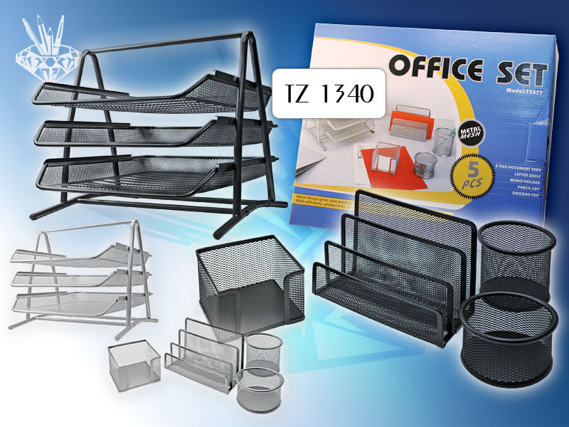 TUKZAR Настольный офис набор, 5 предметов, черный цвет, лоток для бумаг тройной, подставка для писем, лоток для записных блоков, подставка для скрепок, подставка для ручек. TZ 1340