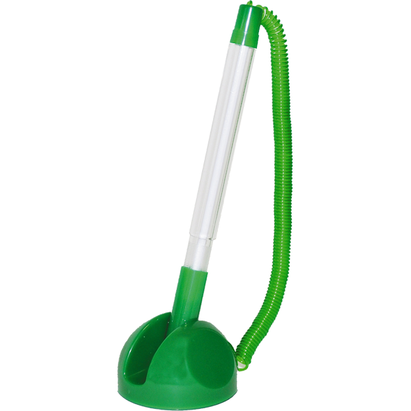 Ручка "iOffice", арт, I-TB01-0403. Ручка шариковая на подставке, с пластиковым шнуром, цвет корпуса прозрачный с зеленым. Самоклеющаяся круглая подставка, диаметр 30 мм. Пластмассовая цепочка. Сменный стержень синего цвета.