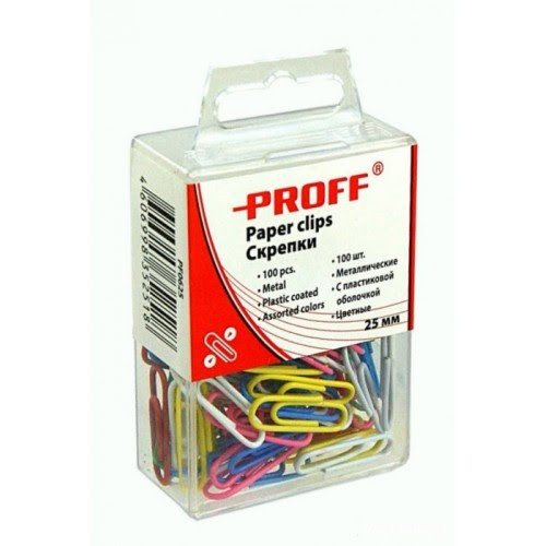Скрепки цветные 25 мм., 100 штук в пачке, изготовитель PROFF, арт. PF0625